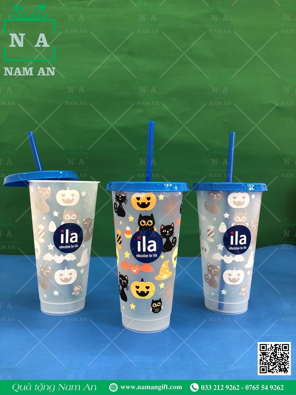 Khách hàng ILA đã dùng mẫu ly đổi màu của mùa Halloween 2023 để dùng làm quà cho các bạn học sinh của mình. Dung tích 710ml này đảm bảo được khối lượng nước đầy đủ cho một buổi học trọn vẹn nhiều niềm vui, cơ chế đổi màu lạnh thú vị làm thay đổi đi những nhàm chán không đáng có, và với chất liệu nhựa PP an toàn cho việc tái sử dụng. Ngoài ra, chúng ta sẽ có thể tạo nên rất nhiều thiết kế khác nhau cho ly đổi màu, không chỉ gói gọn trong các mùa lễ tết.