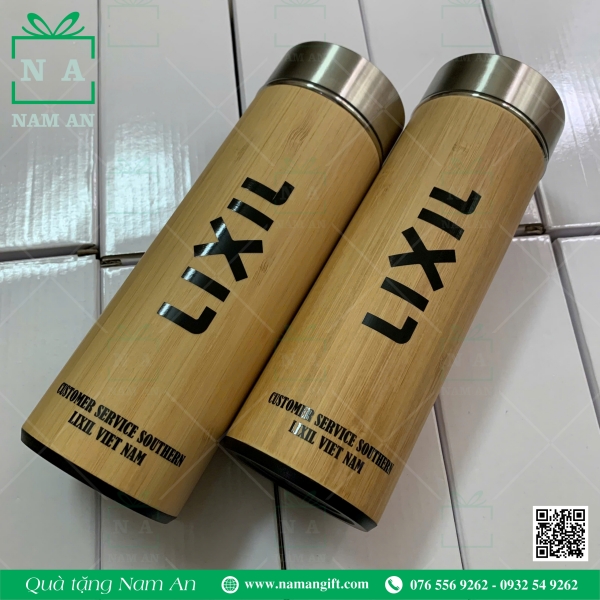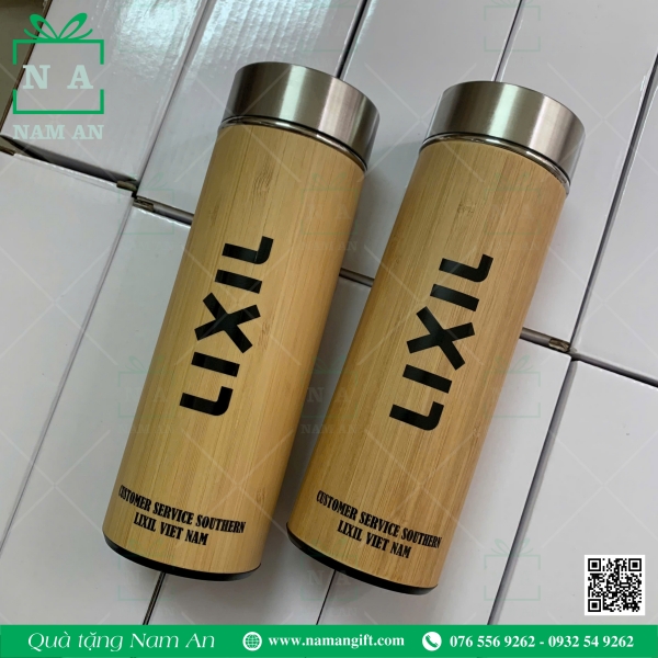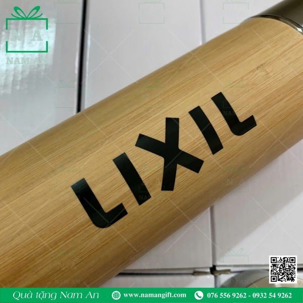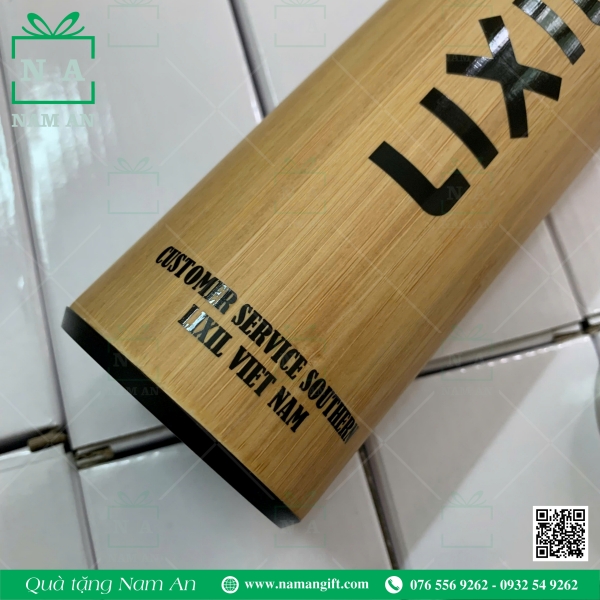 Bình giữ nhiệt gỗ in logo thương hiệu khách hàng Lixil