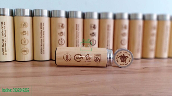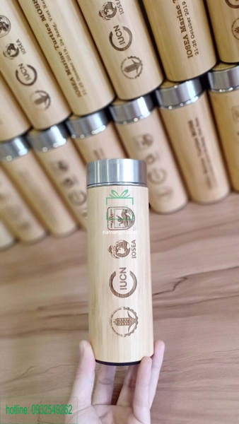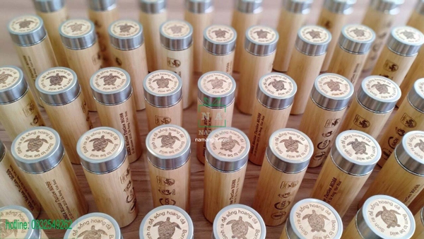 Bình giữ nhiệt bằng vỏ gỗ tre nên có thể khắc lazer lên trên thân hoặc nắp theo yêu cầu.