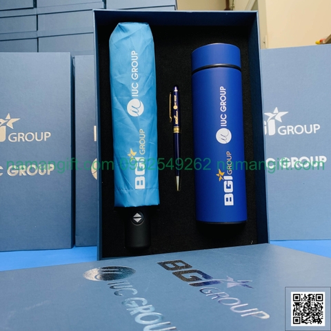 BỘ QUÀ BÚT - BÌNH - DÙ, GIA CÔNG LOGO K/H IUC GROUP