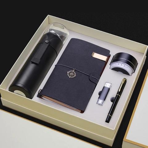 Bộ giftset quà tặng 5 món bao gồm: bình giữ nhiệt, sổ da, loa bluetooth, usb, bút...