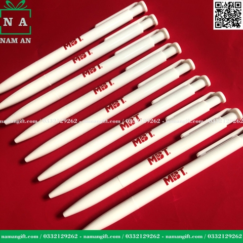 Bút bi nhựa in logo khách hàng doanh nghiệp MBT