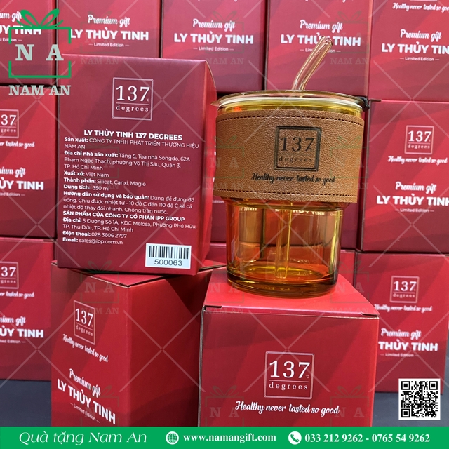 Cảm ơn Khách Hàng 137 Degree đã lựa chọn Quà Tặng Nam An làm nhà sản xuất cho chiến dịch lần này, áp dụng cho khách hàng mua số lượng “sữa hạt” được quy định thì sẽ nhận được những chiếc Ly Thủy Tinh Bọc Da này. Hãy cùng chúng tôi điểm qua một số điểm đặc biệt của ly nhé.