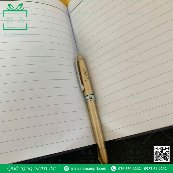 Bút ký dạng nắp cài in logo khách hàng theo thiết kế riêng đi kèm sổ da làm quà tặng