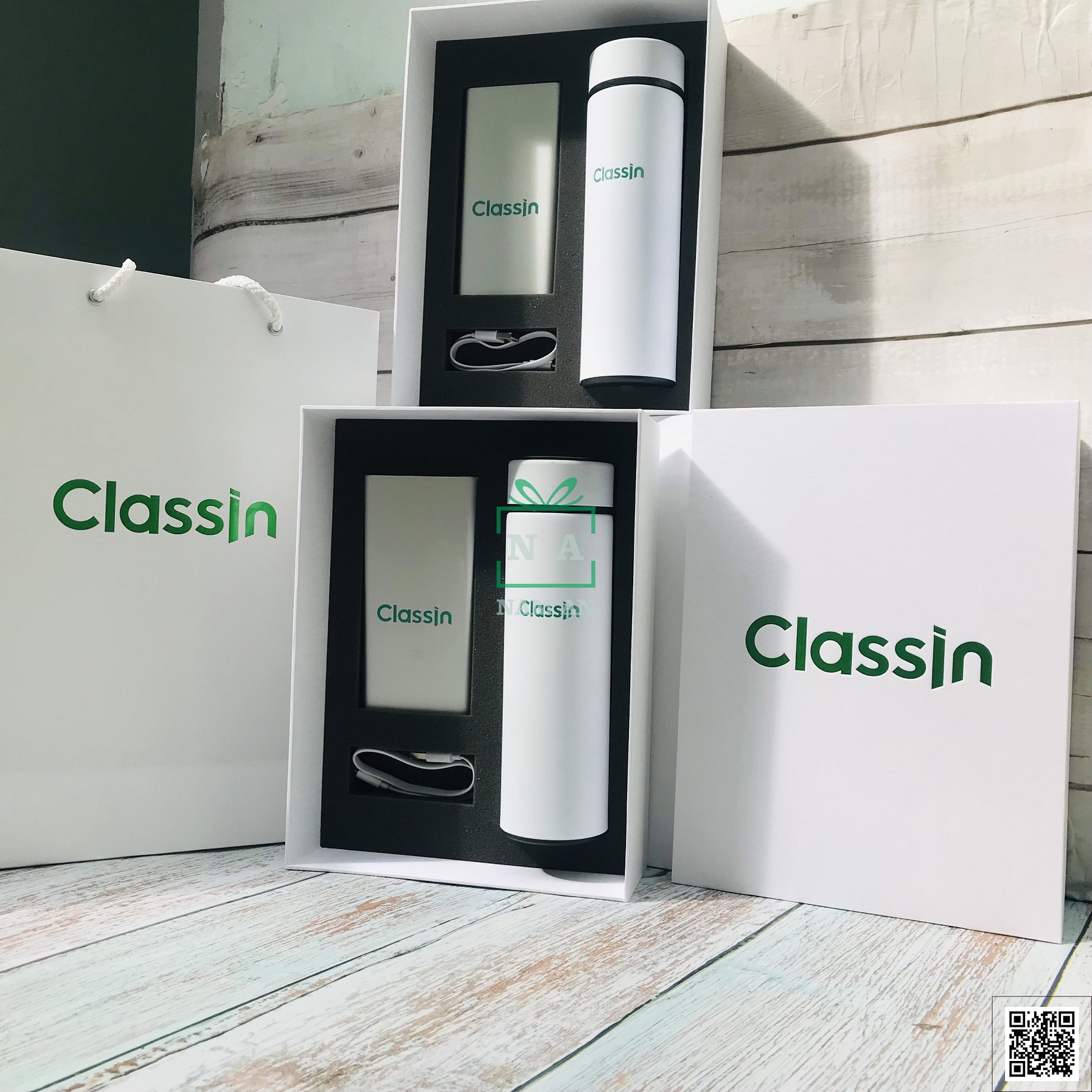 Sạc dự phòng và bình giữ nhiệt khắc/ in logo – TẶNG KÈM BÚT BI.