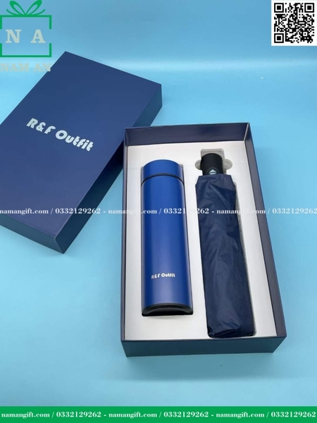5. Bình giữ nhiệt và dù cầm tay đi kèm hộp đựng của khách hàng R&F Outfit