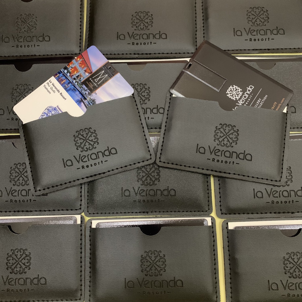 Sản phẩm USB thẻ của khách hàng Veranda lần này đã được trang bị túi da sang trọng cho mỗi chiếc USB thẻ, điều này đã tạo thêm một điểm nhấn khá sang trọng, tạo nên ấn tượng mạnh mẽ cho người nhận. Với thiết kế riêng biệt, chiếc bao da PU này đã trở thành cặp bài trùng với USB thẻ mà không cần phải gọi tên hay giải thích gì thêm, nhìn vào thì đáp án sẽ hiện ra ngày trước mắt. Không những thế, ngoài ví da PU, chúng tôi cũng có thể “Custom” hô biến chúng thành những chiếc móc khóa, hoặc phụ kiện đi kèm với chìa khóa bằng một khoen nhỏ kim loại ở góc thẻ nếu như điều đó phù hợp với tệp khách hàng đang nhắm đến. Có rất nhiều lựa chọn khác nữa, như hộp kim loại, hộp gỗ, hộp giấy bế,… Hãy liên hệ với chúng tôi để được tư vấn hoàn toàn miễn phí nhé.
